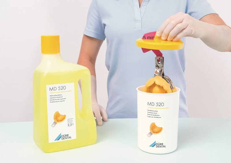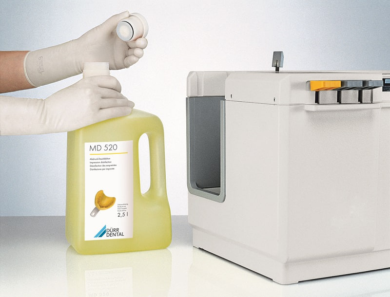 Не содержащий спирта готовый раствор для эффективной и щадящей дезинфекции и очистки слепков, зубных протезов и т. д.